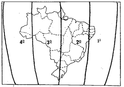 Em consequência da grande extensão territorial, da posição geográfica e da configuração do seu território, o Brasil é abrangido por 4 (quatro) fusos, horários, delimitados no mapa. Assim, quando em São Paulo forem 12 horas, em Manaus e São Luís serão respectivamente: