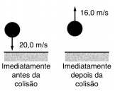 Em uma aula de educação física, o professor convida os estudantes para observar o movimento de uma bola de basquete de 500 g, arremessada contra o solo. Nesse experimento, as velocidades da bola imediatamente antes e depois da colisão foram determinadas e estão mostradas na figura a seguir. Três afirmações propostas pelo professor acerca da colisão da bola com o chão devem ser analisadas pelos estudantes como verdadeiras (V) ou falsas (F). São elas: