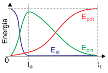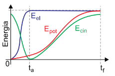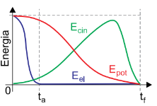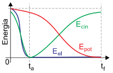 Considerando a energia total do sistema composta pelas energias potencial elástica do estilingue (Eₑₗ), cinética