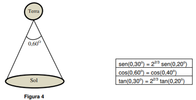 O diâmetro angular aparente do Sol visto da Terra (ângulo subentendido pelo disco solar) é de 0,60º, conforme mostra a Figura 4. Visto de Marte, o diâmetro angular aparente do Sol é 0,40º.