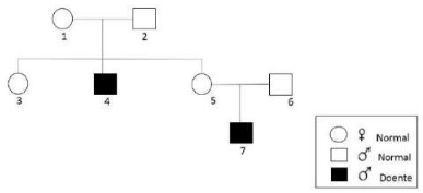 A doença de Tay-Sachs é um distúrbio neurológico degenerativo, autossômico recessivo, causada pela disfunção dos lisossomos. O heredograma de três gerações da família Silva, apresentado abaixo, mostra indivíduos com essa doença.