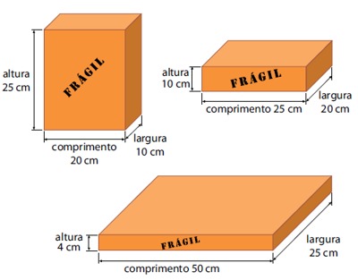 Uma empresa de cerâmica utiliza três tipos de caixas para embalar seus produtos, conforme mostram as figuras.