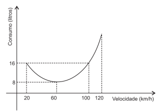 A equipe de teste de uma revista automobilística avaliou o consumo de combustível de um determinado modelo de automóvel. O teste consistia em cada membro da equipe percorrer, com o automóvel, um mesmo trecho de estrada cinco vezes, em velocidade constante, porém, cada vez a uma velocidade diferente. A equipe chegou à conclusão de que a velocidade econômica era de 60 km/h e de que o gráfico correspondente ao consumo era parte de uma parábola.