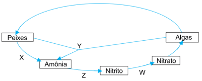O esquema apresenta parte do ciclo do nitrogênio. As letras W, X, Y e Z indicam algumas etapas associadas a esse ciclo.