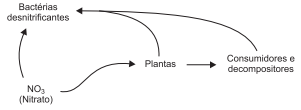 O esquema a seguir representa de forma parcial o ciclo do nitrogênio presente na natureza com alguns dos seus componentes bióticos.