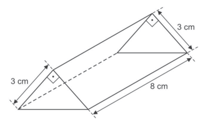 A fábrica de chocolates DOCE MANIA deseja lançar barrinhas de chocolate no formato de um prisma triangular. As dimensões estão indicadas na figura abaixo.