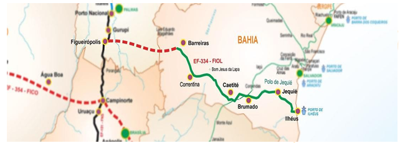 Essa preocupação é justificável, tendo em vista que a ferrovia, representada no mapa pelo traçado em verde, passa pelos seguintes domínios morfoclimáticos: