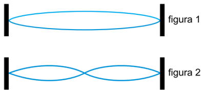 As figuras 1 e 2 representam a mesma corda de um instrumento musical percutida pelo músico e vibrando em situação estacionária.