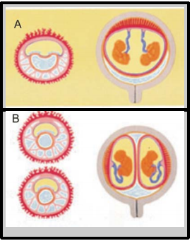 As figuras A e B a seguir referem-se aos diferentes tipos de gêmeos humanos.
