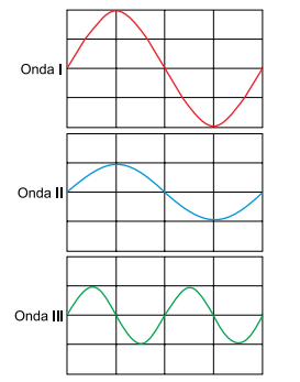 As figuras representam, em uma mesma escala, três ondas transversais, I, II e III, que se propagam por três cordas idênticas e igualmente tracionadas