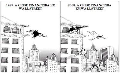 No final de 2008, o mundo foi envolvido numa crise financeira que atingiu, e ainda atinge, a vida de todos. Neste período, muitas referências foram feitas à crise econômica de 1929. A charge abaixo é exemplar: