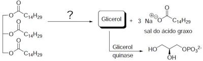 a) Com base no esquema apresentado, forneça a estrutura química do glicerol e o nome da reação que leva a sua formação.