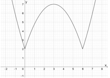 O esboço do gráfico de | f(x - 3) | + 2 está representado na alternativa
