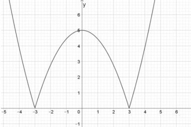O gráfico de f(x) está esboçado na imagem a seguir.