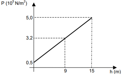 O gráfico abaixo ilustra a variação da pressão em função da profundidade, para um líquido contido em um reservatório aberto.