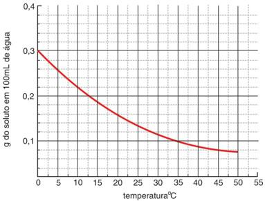 O gráfico a seguir representa a solubilidade de CO₂ na água em diferentes temperaturas.