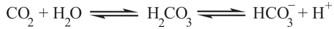Após a dissolução, o CO₂ reage com a água segundo a equação: