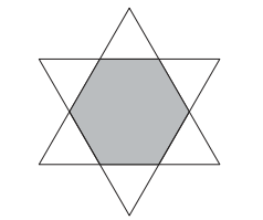 O hexágono cujo interior aparece destacado em cinza na figura é regular e origina-se da sobreposição de dois triângulos equiláteros.