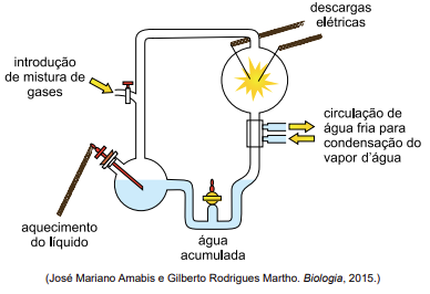 A figura ilustra o experimento realizado por Miller e Urey, no qual a hipótese de Oparin e Haldane foi testada.