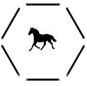 A imagem a seguir representa a vista superior de um estábulo para cavalos. Este local tem o formato de um hexágono regular com entradas de acesso em todos os vértices, como mostra a figura. De quantas maneiras diferentes um cavalo pode entrar por uma porta e sair por outra?