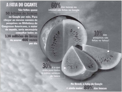 Afigura a seguir, publicada na revista Veja em 17/12/2008, mostra como são feitas as buscas na internet.