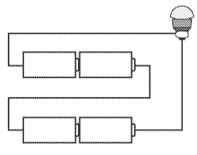 Em um laboratório, são apresentados aos alunos uma lâmpada, com especificações técnicas de 6V e 12W, e um conjunto de 4 pilhas de 1,5V cada.