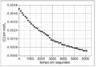 da reação de clareamento apresentada é de aproximadamente 35 minutos, que se refere ao tempo necessário para a cor diminuir metade da sua coloração inicial.