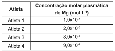 A tabela a seguir reporta dados sobre a quantidade de magnésio plasmático de quatro atletas pertencentes à mesma modalidade esportiva.