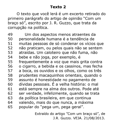 “O mal está sempre na alma dos outros” (linhas 60-61). Há alguns ditos populares que têm alguma relação com essa frase axiomática. Assinale a opção cujo enunciado está em DESACORDO com a frase em destaque.