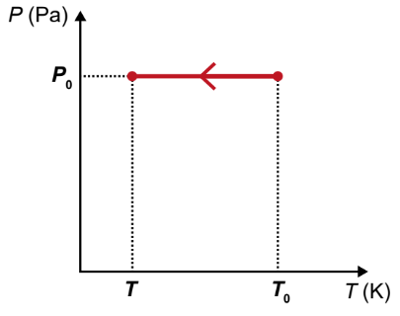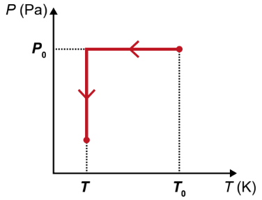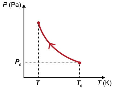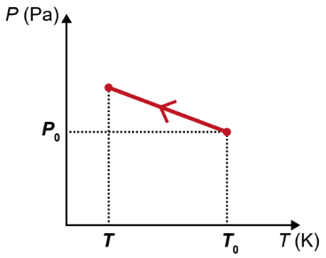 Durante o processo de resfriamento, os valores de pressão em relação à temperatura (P × T) são representados pelo gráfico: