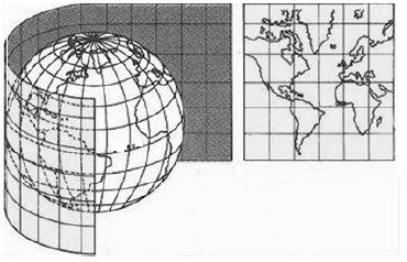 Assinale a alternativa que apresenta o tipo de projeção em que ele foi feito.