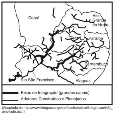 O mapa abaixo representa a área abrangida pelo projeto de transposição do rio São Francisco.