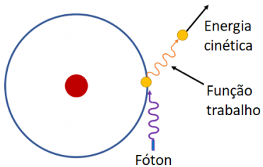 A menor energia necessária para arrancar elétrons de uma barra metálica é denominada função trabalho (𝛷). Se um fóton tiver energia inferior à função do trabalho, ele não será capaz de arrancar elétrons do metal. Por outro lado, se o fóton tiver energia superior, ele poderá arrancar os elétrons. A energia que sobra é convertida em energia cinética para os elétrons.