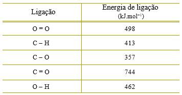 O metanal é um poluente atmosférico proveniente da queima de combustíveis e de atividades industriais. No ar, esse poluente é oxidado pelo oxigênio molecular formando ácido metanoico, um poluente secundário. Na tabela abaixo, são apresentadas as energias das ligações envolvidas nesse processo de oxidação.