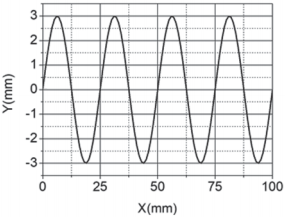 A figura mostra a oscilação em uma corda em um dado instante de tempo. A velocidade de propagação da onda é 0,400 m/s.