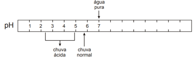 A figura abaixo mostra valores de pH medidos para a chuva ácida, chuva normal e água pura.