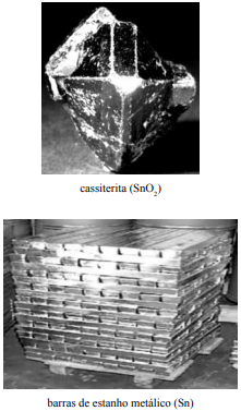Os números de oxidação do elemento estanho na cassiterita e no estanho metálico são, respectivamente,