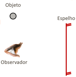 o observador será capaz de enxergar sua própria imagem e a imagem do objeto, que serão virtuais, através do espelho.