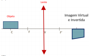 Assinala a alternativa abaixo que a presenta a configuração mais próxima da imagem conjugada pela lente com suas características