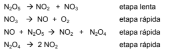 Um óxido de nitrogênio se decompõe de acordo com a reação 2 N₂O₅ ➞ 4 NO₂ + O₂ e apresenta o seguinte mecanismo: