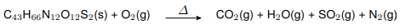 Considerando a combustão total e estequiométrica da oxitocina com 111,0 mols de gás oxigênio, assinale a alternativa que apresenta, corretamente, a quantidade, em gramas, de dióxido de enxofre produzida.