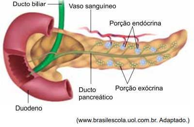 a) Com relação às porções endócrinas e exócrinas do pâncreas, quais são os dois tipos de substâncias reguladoras produzidas por essa glândula?