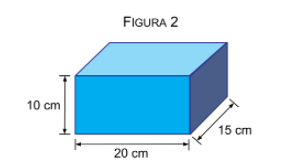 Posteriormente, o paralelepípedo é apoiado na mesma superfície, mas sobre a face de lados 15 cm e 20 cm, como mostra a figura 2.