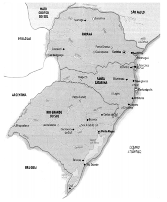 A partir da análise do mapa, aliada aos conhecimentos sobre a Região Sul e o Estado do Paraná, marque V nas afirmativas verdadeiras e, F, nas falsas.
