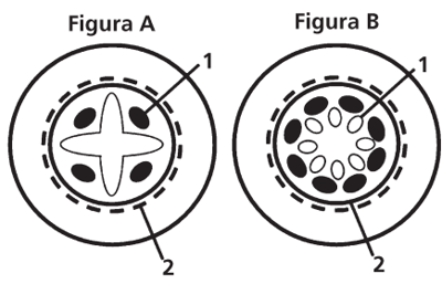 A partir da organização tecidual, é possível reconhecer o estágio de desenvolvimento das plantas e mesmo diferenciar monocotiledôneas e eudicotiledôneas. Nas figuras A e B são apresentados esquemas de raízes em crescimento primário, com a indicação dos tecidos 1 e 2.