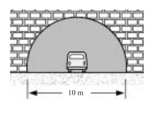 O carro esquematizado está com sua buzina localizada exatamente no centro do arco que delimita o túnel, cujo diâmetro é 10 m. Se a buzina emite o som da nota Lá (440 Hz), e se a velocidade de propagação do som no ar é 340 m/s, o número de comprimentos de onda que o som percorrerá até atingir o teto do túnel é, aproximadamente,