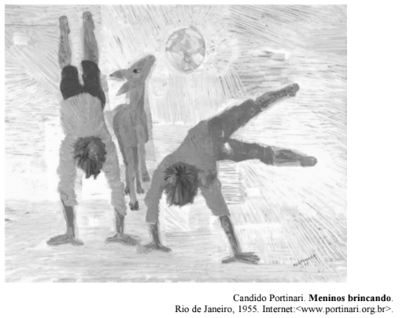 O trecho “aquele enorme vaso metido no chão, coberto de folhas verdes, flores, aves que mergulhavam de cabeça para baixo, desarranjava-me a ciência” conecta-se às imagens apresentadas, pois, nas três obras artísticas, a perspectiva infantil refletida é a da possibilidade de ver o mundo conhecido sob um ângulo desconhecido.