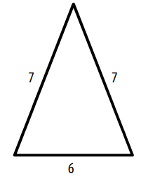 Uma pirâmide regular tem base quadrada de lado 6, e 4 faces triangulares congruentes com o triângulo abaixo: