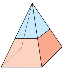 Em uma pirâmide regular de base quadrada, as medidas da diagonal da base e do apótema lateral são iguais a cm e 13 cm, respectivamente. Do volume total dessa pirâmide, cujas faces e base são de vidro transparente, 528 cm³ (Vc) estão preenchidos com areia colorida, e o volume restante (Va), com material granulado azul.
