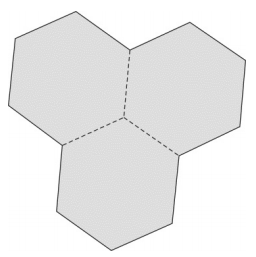 Uma das piscinas do Centro de Práticas Esportivas da USP tem o formato de três hexágonos regulares congruentes, justapostos, de modo que cada par de hexágonos tem um lado em comum, conforme representado na figura abaixo. A distância entre lados paralelos de cada hexágono é de 25 metros.
